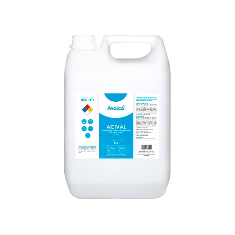 Acival es un detergente ácido desinfectante de alta espuma, diseñado para limpiar, desinfectar y desodorizar en un solo paso ✨. Ideal para pisos de baños, camarines, salas de vestuario, paredes y cualquier superficie lavable con agua ?. Su fórmula especializada permite eliminar suciedad, gérmenes y olores de forma rápida y eficaz.