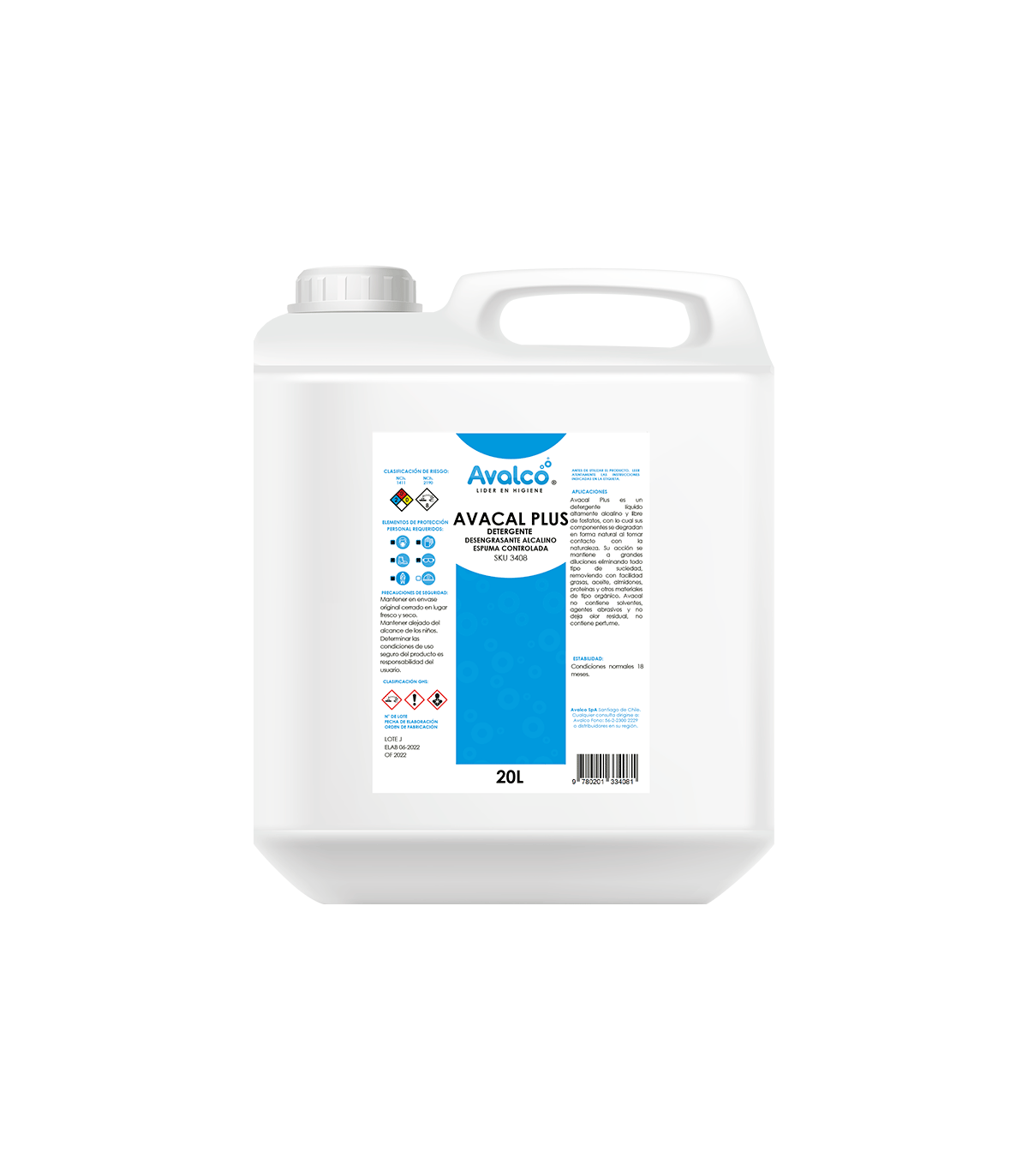 Avacal Plus - Detergente Desengrasante Alcalino Espumoso Bl 20 Litros, es un detergente altamente alcalino, espumoso y libre de Fosfatos. Sus componentes se degradan en forma natural. Es altamente eficaz en la limpieza rápida cuando se requiere un corto tiempo de contacto. Mejora la calidad de limpieza tradicional, es económico, pues su acción se mantiene a grandes diluciones, eliminando todo tipo de suciedad, removiendo con facilidad grasas aceite, almidones, proteínas y otros materiales de tipo orgánico. Aprovecha de comprar detergentes alcalinos con nosotros.