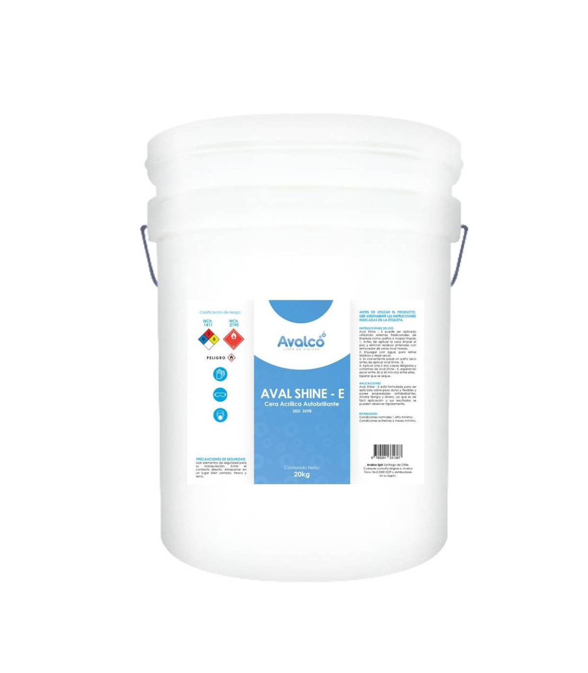 Avalshine -E - Cera Autobrillo 20 L, acrilica economica incolora formulada para ser aplicada sobre pisos duros y flexibles y posee propiedades antideslizantes.