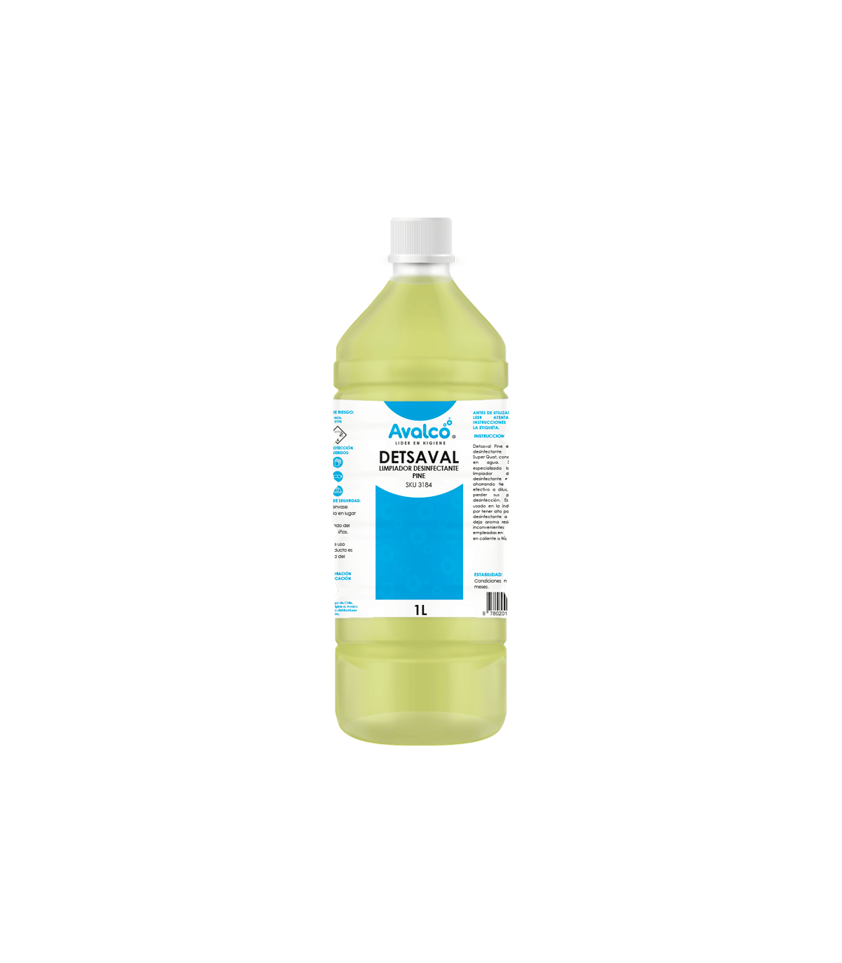 Detsaval - Limpiador Desinfectante Pine Bd 1 Litro, es un detergente desinfectante formulado con Super Quat, concentrado y soluble en agua. Su formulación especializada lo hace ser un limpiador detergente y desinfectante en un solo paso, ahorrando tiempo y dinero. Es efectivo a diluciones de uso, sin perder sus propiedades de desinfección. Es ideal para ser usado en la industria alimenticia, por tener alto poder detergente y desinfectante a la vez, sin dejar deja aroma residual. Soporta sin inconvenientes aguas duras empleadas en las diluciones ya sea en caliente o frío.