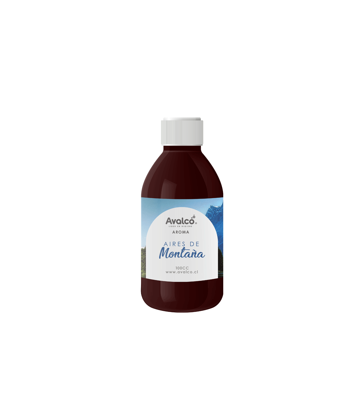 Aroma Aires de Montaña 100 cc es un desodorante ambiental diseñado especialmente para nebulizadores de grandes áreas, formulado a base de aceites esenciales y delicadas fragancias de acción continua. Este y otros productos similares los podrás conseguir en la categoría insumos de aromatización.